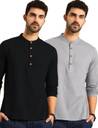 Pack of 2 Men Solid Pure Cotton Straight Kurta (Beige)