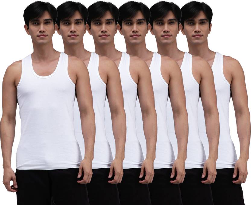 Amul Comfy Men's Cotton Solid White Scoop Neck Sleeveless Vest - Pack of 6 . 100% pure cotton. Seamless body with superior comfort. Made of single jersey fabric. Ultra-soft hand feel. Tag-less branded label. Crafted from pure cotton, providing a soft and breathable feel against the skin. Classic white vest. Snug fit for a streamlined silhouette, offering both comfort and style. Reinforced stitching enhances longevity, ensuring resilience to daily wear. Suitable for wearing on its own or as an undershirt, adapting to different wardrobe needs.