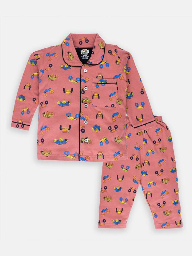 Girls Printed Cotton Kids Nightwear (Pink Pack of 1)