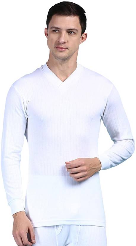 Men's V Neck Full Sleeves White Top/Upper/Vest Thermal - Pack of 1. Feather Soft Fabric, Use polyester cotton fabric for a soft velvety feel. Soft Brushed inner surface that absorbs moisture from the skin. Extremely warm- triple Insulated with polyfill wedges between two Layers of Cotton. Ultra Thin- Ligh-weight lean fabric with high stretch for mobility with ease. Comfort to wear- Falt seam with the tagless branded label makes them comfortable as well as smooth look. reinforcement stitch secured with bar tack for Durability. Modern Fit.