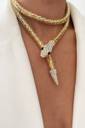 Elevate your style with this stunning Gold-Toned Snake Design Statement Necklace. Crafted to perfection, this unique piece features a snake motif with intricate crystal embellishments on the head and tail, adding a glamorous edge to your look. The flexible, braided gold chain comfortably wraps around your neck, making it an ideal accessory for both ethnic and western outfits.