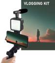 Video Vlogging Kit with Microphone Light Tripod Phone Holder Remote Control for Tiktok YouTube Live Recording Tripod Kit MULTI-USE PHOTOGRAPHY ACCESSORIES: Use as a camera stand tripod, table top tripod, camera handle, camera grip, to easily maneuver the camera when taking on-the-go video and action shots.Mini tripod designed to support video and still shots while keeping your camera steady. Compact design provides an easy way to take it everywhere you go.Vlogging Kit for Video Making with Bluetooth Remote, Mic, Mini Tripod Stand, LED Light & Phone Holder Clip for Making Videos, Recording YouTube Videos. Packaging:-: 1 Unit Tripod, 1 Unit Led Flash, 1 Unit microphone, 1 Unit Smartphone Universal holder, 1 Unit Remote Control