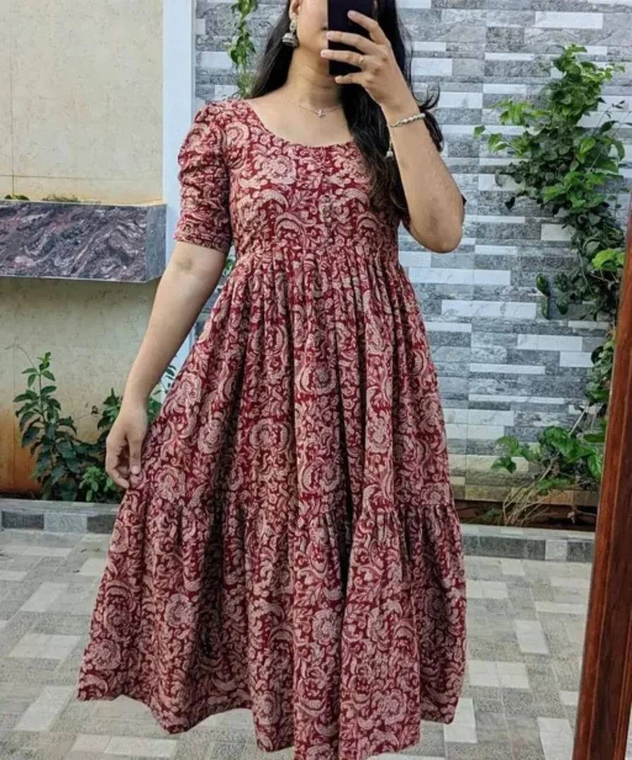 Embroidered Pure Cotton Stitched Flared/A-line Gown (Multicolor)