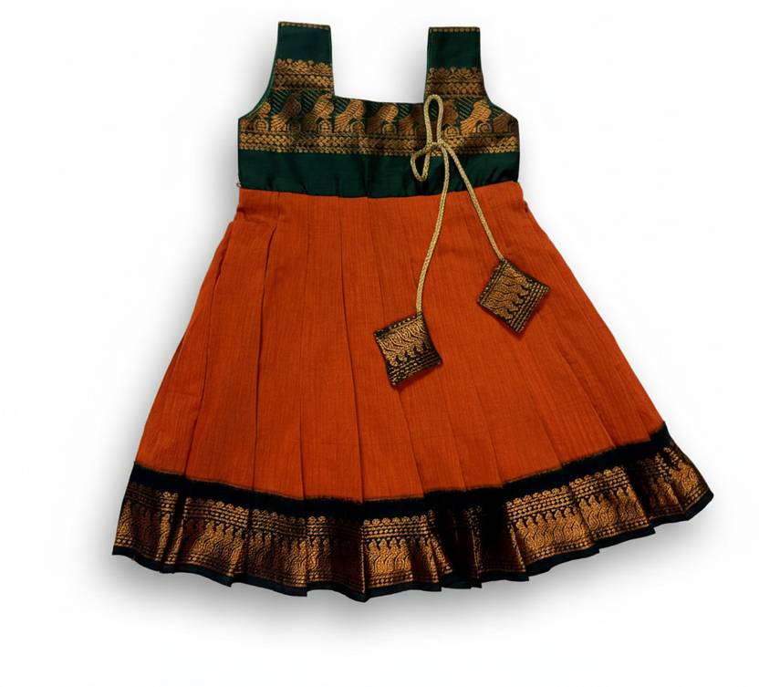 With its midi-length cut, this dress is ideal for kids who need comfort without compromising on traditional style. Whether it’s a wedding, festival, temple visit, photoshoot or school ethnic day, this dress is perfect for every special moment.