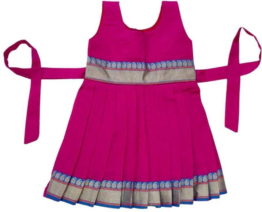 Let your little one stay stylish and comfortable with this beautifully crafted Mangalagiri Cotton Frock. Designed with a clean round neckline, and The sleeveless design allows easy movement and keeps kids cool during warm weather and long celebrations. Stylish, comfortable, and perfect for playful moments!
