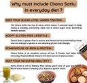 Nutrient Content | - Nutrition Facts per 100gm of Chana Sattu:, Energy: 360 kcal, Protein : 12g, Total Fats : 4g, Carbohygrates: 73g, Dietary Fiber: 8g, Calcium: 8mg, Iron: 3mg