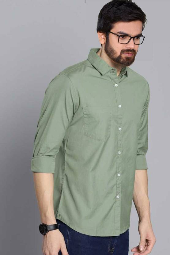Men Slim Fit Solid Spread Collar Casual Shirt