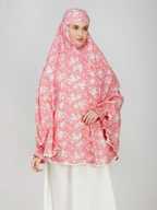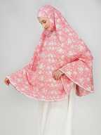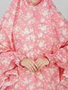 Step into prayer with grace and ease in the ANA Maham Pink Floral Prayer Dress. Crafted from soft cotton, it feels light and breathable—perfect for long wear, salah, or travel. The pink floral print and lace detailing add a modest yet stylish touch. Its free-size design includes features attached sleeves for easy movement and a tie knot at the back for a secure fit. With a front length of 40 inches and a back length of 44 inches, it offers full coverage and easy movement. Whether you're at home, on the go, or traveling, this makhna is practical, comfortable, and easy to maintain with simple hand wash care.