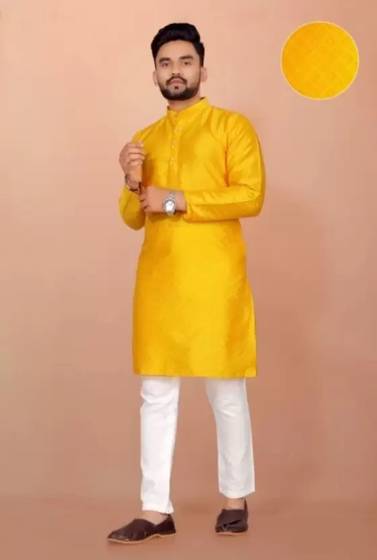 Men jacquard full sleeve kurta.Kurta Available Sizes are - S = 36 inches, M = 38 inches, L= 40 inches, XL= 42 inches. Sleeve length - S = 22.5 inches, M = 23 inches, L= 23.5 inches, XL= 24 inches. Kurta Length - S=28 Inches, M = 28.5 inches, L = 29.5 inches, XL= 30 inches.
