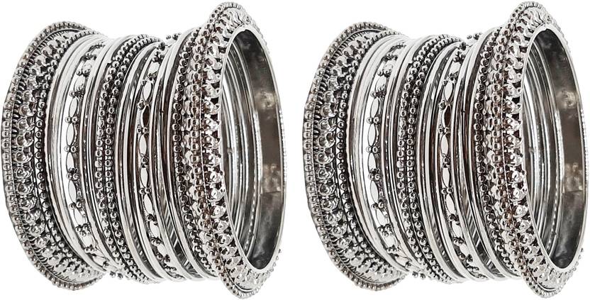 Anahat collection has huge collection of designer imitation jewellery and now provides you the JOY OF WEARING BEST Designer combo of black silver plated metal kada chudi bangle set for women and girls. Color of the product looks appealing and attractive. This product is well crafted that you can wear this product on any party, wedding, relegious, festive occassion and team up with any outfits like saree, kurti, gown, suit outfit .It is a precious craft which is made up of excellent quality material. It is light in weight and comfortable to wear.you can also gift this product to yourself or someone you love. It is advisable to store jewellery in a zip lock pouch (air tight pouch), keep away from water perfume and other chemicals and clean it with dry and soft cloth. Product colour may slightly vary due to photographic lighting sources or your monitor settings.