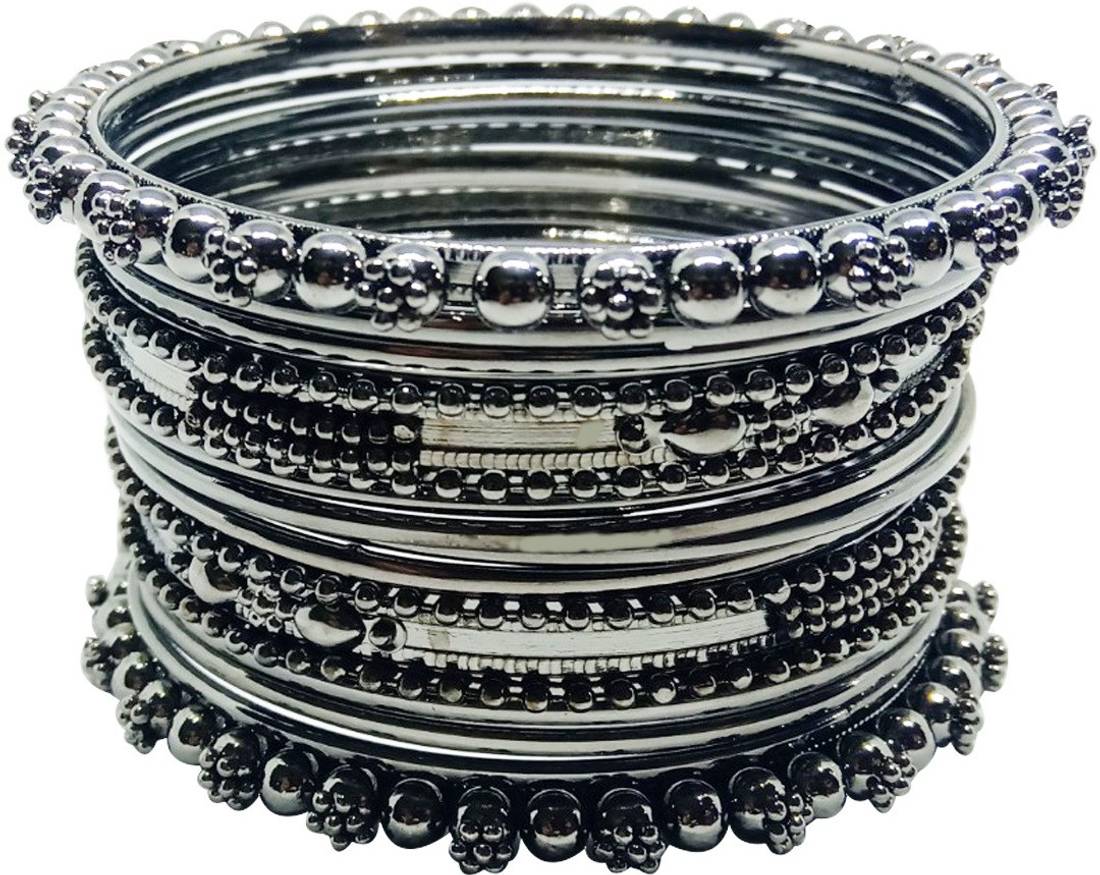 Anahat collection provides you the metal plated designer and ethnic black metal bangle set for women and Girls.Color of the product looks more beautiful and attractive to users.you can wear this product on any casual and festive occassion and team up with any outfit like saree, kurti, gown, suit .It is made up of very good quality of material. it enhances the personality of the wearer.Just keep it away from water, sprays and perfume.