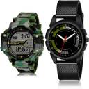 Dial Colour : White And Black ; Band Colour : Green And Black ; Case Shape : Round ; Band Material : Resin And Plastic ; Case Diameter : 55 And 42 mm ; GROOT Treading Fashionable Army Digital Sports Green And Black Colour Analog And Digital Resin And Plastic Belt 2 Watch Combo For Boys And Men - BC17-(43-S-10)