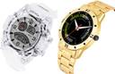 Dial Colour : White And Black ; Band Colour : White And Gold ; Case Shape : Round ; Band Material : Plastic And Stainless Steel ; Case Diameter : 55 And 43 mm ; NEUTRON Latest Collegian Transparent Army Sports And Gold Chain White And Gold Colour Analog And Digital Plastic And Stainless Steel Belt 2 Watch Combo For Boys And Men - BC31-(43-S-21)