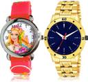 Dial Colour : White And Blue ; Band Colour : Red And Gold ; Case Shape : Round ; Band Material : Plastic And Stainless Steel ; Case Diameter : 29 And 43 mm ; TIMENTER New Designer Doll Kids And Gold Chain Red And Gold Colour Analog Plastic And Stainless Steel Belt 2 Watch Combo For Boys And Men - BK74-(54-S-21)
