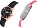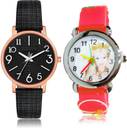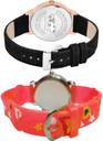 Dial Colour : Black And White ; Band Colour : Black And Red ; Case Shape : Round ; Band Material : Genuine Leather And Plastic ; Case Diameter : 36 And 29 mm ; NEUTRON Latest Designer Embossed Designer Dial And Doll Kids Black And Red Colour Analog Genuine Leather And Plastic Belt 2 Watch Combo For Women And Girls - GM346-GC77