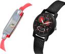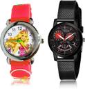 Dial Colour : White And Black ; Band Colour : Red And Black ; Case Shape : Round ; Band Material : Plastic ; Case Diameter : 29 And 32 mm ; GROOT New Model Doll Kids Red And Black Colour Analog Plastic Belt 2 Watch Combo For Women And Girls - GC76-(37-L-10)#