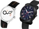 Dial Colour : White And Blue ; Band Colour : Black ; Case Shape : Round ; Band Material : Genuine Leather And Plastic ; Case Diameter : 39 And 42 mm ; GROOT Classical Unique Unique Black Colour Analog Genuine Leather And Plastic Belt 2 Watch Combo For Boys And Men - BM13-(62-S-10)