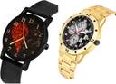 Dial Colour : Black ; Band Colour : Black And Gold ; Case Shape : Round ; Band Material : Metal And Stainless Steel ; Case Diameter : 40 And 43 mm ; GROOT Modish Heart Heart Love Valentine And Gold Chain Black And Gold Colour Analog Metal And Stainless Steel Belt 2 Watch Combo For Boys And Men - BCPL26-(15-S-21)