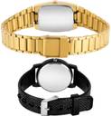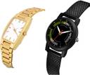 Dial Colour : White And Black ; Band Colour : Gold And Black ; Case Shape : Rectangle And Round ; Band Material : Metal And Plastic ; Case Diameter : 19 And 32 mm ; GROOT Classical Technology Golden Couple Chain Gold And Black Colour Analog Metal And Plastic Belt 2 Watch Combo For Women And Girls - GCPL36-(43-L-10)#