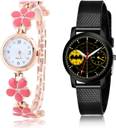 Dial Colour : White And Black ; Band Colour : Rose Gold And Black ; Case Shape : Round ; Band Material : Stainless Steel And Plastic ; Case Diameter : 21 And 32 mm ; GROOT Modern Rich Flower Rose Gold And Black Colour Analog Stainless Steel And Plastic Belt 2 Watch Combo For Women And Girls - G461-(42-L-10)#