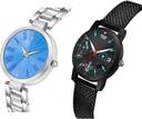 Dial Colour : Blue And Black ; Band Colour : Silver And Black ; Case Shape : Round ; Band Material : Metal And Plastic ; Case Diameter : 33 And 32 mm ; GROOT Modish Chronograph Simple Chain Silver And Black Colour Analog Metal And Plastic Belt 2 Watch Combo For Women And Girls - G603-(41-L-10)#