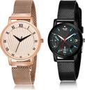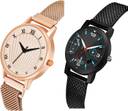 Dial Colour : Rose Gold And Black ; Band Colour : Rose Gold And Black ; Case Shape : Round ; Band Material : Stainless Steel And Plastic ; Case Diameter : 33 And 32 mm ; GROOT Brand New Love Magnet Rose Gold And Black Colour Analog Stainless Steel And Plastic Belt 2 Watch Combo For Women And Girls - G518-(41-L-10)#