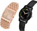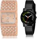 Dial Colour : Rose Gold And Black ; Band Colour : Rose Gold And Black ; Case Shape : Rectangle And Round ; Band Material : Metal And Plastic ; Case Diameter : 30 And 32 mm ; GROOT Contemporary Fancy Chain Bracelet Diamond Rose Gold And Black Colour Analog Metal And Plastic Belt 2 Watch Combo For Women And Girls - G591-(43-L-10)#