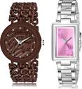 Dial Colour : Brown And Pink ; Band Colour : Brown And Silver ; Case Shape : Round And Rectangle ; Band Material : Metal And Stainless Steel ; Case Diameter : 36 And 23 mm ; NEUTRON Treading Technology Chain Bracelet Diamond And Chain Brown And Silver Colour Analog Metal And Stainless Steel Belt 2 Watch Combo For Women And Girls - G569-GM213