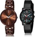 Dial Colour : Brown And Black ; Band Colour : Brown And Black ; Case Shape : Round ; Band Material : Metal And Plastic ; Case Diameter : 33 And 32 mm ; GROOT Modish Model Simple Chain Brown And Black Colour Analog Metal And Plastic Belt 2 Watch Combo For Women And Girls - G612-(41-L-10)#