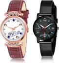 Dial Colour : White And Black ; Band Colour : Red And Black ; Case Shape : Round ; Band Material : Genuine Leather And Plastic ; Case Diameter : 29 And 32 mm ; GROOT Brand New Tread Simple Red And Black Colour Analog Genuine Leather And Plastic Belt 2 Watch Combo For Women And Girls - GW5-(41-L-10)#