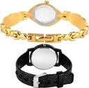 Dial Colour : Gold And Black ; Band Colour : Gold And Black ; Case Shape : Round ; Band Material : Stainless Steel And Plastic ; Case Diameter : 19 And 32 mm ; GROOT Treading Rich Stainless Steel Gold And Black Colour Analog Stainless Steel And Plastic Belt 2 Watch Combo For Women And Girls - G124-(40-L-10)#
