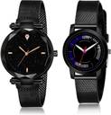 Dial Colour : Black ; Band Colour : Black ; Case Shape : Round ; Band Material : Stainless Steel And Plastic ; Case Diameter : 33 And 32 mm ; GROOT Modish Collegian Magnet Black Colour Analog Stainless Steel And Plastic Belt 2 Watch Combo For Women And Girls - GC1-(44-L-10)#