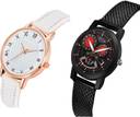 Dial Colour : White And Black ; Band Colour : White And Black ; Case Shape : Round ; Band Material : Genuine Leather And Plastic ; Case Diameter : 36 And 32 mm ; NEUTRON Modish Tread Roman Numbers White And Black Colour Analog Genuine Leather And Plastic Belt 2 Watch Combo For Women And Girls - GW51-(37-L-10)