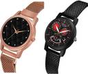 Dial Colour : Black ; Band Colour : Rose Gold And Black ; Case Shape : Round ; Band Material : Metal And Plastic ; Case Diameter : 34 And 32 mm ; GROOT Modish Style Magnetic Chain Rose Gold And Black Colour Analog Metal And Plastic Belt 2 Watch Combo For Women And Girls - GW18-(37-L-10)#