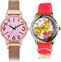 Dial Colour : Pink And White ; Band Colour : Rose Gold And Red ; Case Shape : Round ; Band Material : Metal And Plastic ; Case Diameter : 33 And 29 mm ; NEUTRON Treading Style Magnet Chain And Doll Kids Rose Gold And Red Colour Analog Metal And Plastic Belt 2 Watch Combo For Women And Girls - GM244-GC76