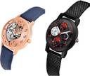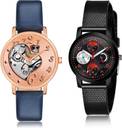 Dial Colour : Rose Gold And Black ; Band Colour : Blue And Black ; Case Shape : Round ; Band Material : Genuine Leather And Plastic ; Case Diameter : 34 And 32 mm ; NIKOLA Best Rich Love Heart Blue And Black Colour Analog Genuine Leather And Plastic Belt 2 Watch Combo For Women And Girls - GM372-(50-L-10)#