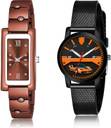 Dial Colour : Brown And Black ; Band Colour : Brown And Black ; Case Shape : Rectangle And Round ; Band Material : Metal And Plastic ; Case Diameter : 22 And 32 mm ; GROOT Best Stylish Chain Bracelet Diamond Brown And Black Colour Analog Metal And Plastic Belt 2 Watch Combo For Women And Girls - G565-(33-L-10)#