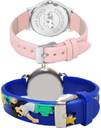 Dial Colour : Pink And White ; Band Colour : Pink And Blue ; Case Shape : Round ; Band Material : Genuine Leather And Plastic ; Case Diameter : 33 And 29 mm ; TIMOXIDE Modern Casual Simple And Ben 10 Kids Pink And Blue Colour Analog Genuine Leather And Plastic Belt 2 Watch Combo For Women And Girls - GM352-GC92#