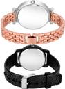 Dial Colour : Silver And Black ; Band Colour : Rose Gold And Black ; Case Shape : Round ; Band Material : Metal And Plastic ; Case Diameter : 35 And 32 mm ; GROOT Brand New Collection Chain Bracelet Rose Gold And Black Colour Analog Metal And Plastic Belt 2 Watch Combo For Women And Girls - GW45-(43-L-10)#