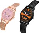 Dial Colour : Pink And Black ; Band Colour : Rose Gold And Black ; Case Shape : Round ; Band Material : Metal And Plastic ; Case Diameter : 32 mm ; GROOT New Casual Star Magnet Chain Rose Gold And Black Colour Analog Metal And Plastic Belt 2 Watch Combo For Women And Girls - GW72-(33-L-10)#