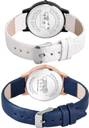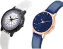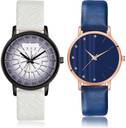 Dial Colour : Purple And Blue ; Band Colour : White And Blue ; Case Shape : Round ; Band Material : Genuine Leather ; Case Diameter : 32 mm ; GROOT Treading Royal Geometric Texture And Embossed Designer Dial White And Blue Colour Analog Genuine Leather Belt 2 Watch Combo For Women And Girls - GM507-GM325#