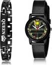 Dial Colour : Black And Green ; Band Colour : Black ; Case Shape : Rectangle And Round ; Band Material : Metal And Plastic ; Case Diameter : 8 And 32 mm ; GROOT New Fancy Queen Bracelet Black Colour 0 And Analog Metal And Plastic Belt 2 Watch Combo For Women And Girls - GX13-(34-L-10)#