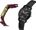 Dial Colour : White And Black ; Band Colour : Pink And Black ; Case Shape : Round ; Band Material : Genuine Leather And Plastic ; Case Diameter : 26 And 32 mm ; GROOT Treading Casual Love Valentine Pink And Black Colour Analog Genuine Leather And Plastic Belt 2 Watch Combo For Women And Girls - G204-(41-L-10)#