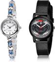 Dial Colour : White And Grey ; Band Colour : Silver And Black ; Case Shape : Round ; Band Material : Stainless Steel And Plastic ; Case Diameter : 21 And 32 mm ; NIKOLA Brand New Exclusive Stone Silver And Black Colour Analog Stainless Steel And Plastic Belt 2 Watch Combo For Women And Girls - G454-(36-L-10)#