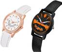 Dial Colour : White And Black ; Band Colour : White And Black ; Case Shape : Round ; Band Material : Genuine Leather And Plastic ; Case Diameter : 32 mm ; NEUTRON Best Quartz Star White And Black Colour Analog Genuine Leather And Plastic Belt 2 Watch Combo For Women And Girls - GW65-(33-L-10)