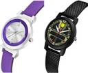 Dial Colour : Silver And Green ; Band Colour : Purple And Black ; Case Shape : Round ; Band Material : Genuine Leather And Plastic ; Case Diameter : 29 And 32 mm ; GROOT Classical Love Simple Purple And Black Colour Analog Genuine Leather And Plastic Belt 2 Watch Combo For Women And Girls - GW24-(34-L-10)#