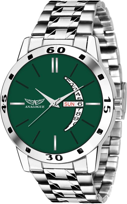 Emerald Green Day and Date Functioning Stainless Steel Metal Strap with Scratch Resistant 1 Year Warranty Water Resistant Quartz Boys Series