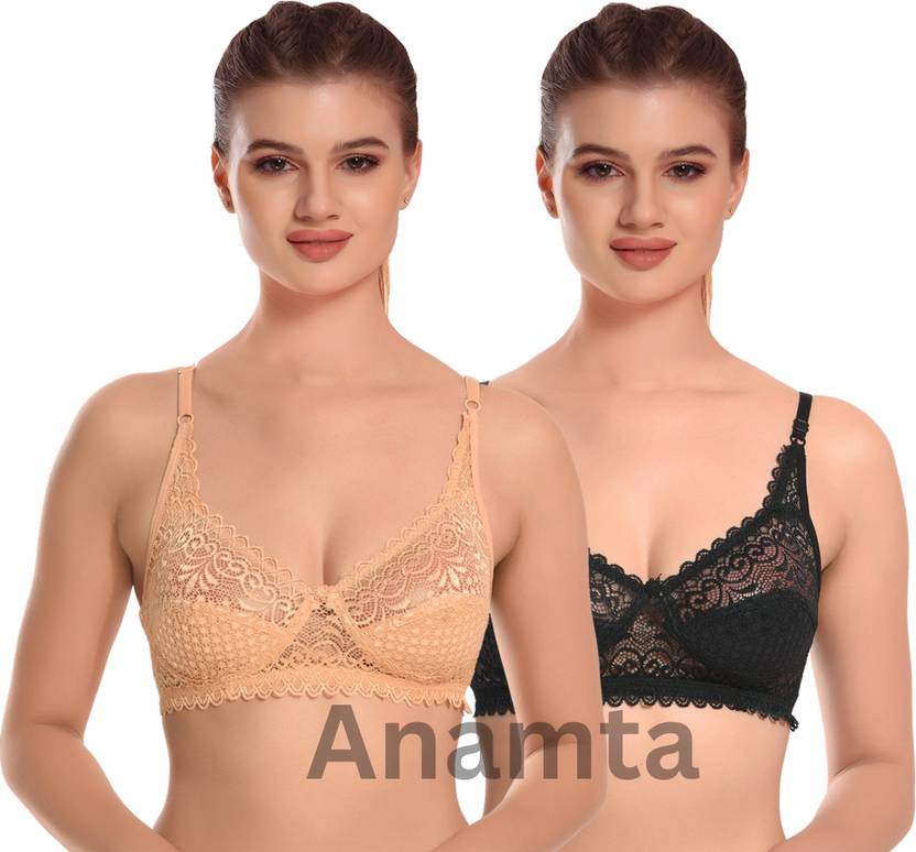 Anamta Pack of 2 net women full coverage non padded bra Women Everyday Non Padded Bra (Multicolor)