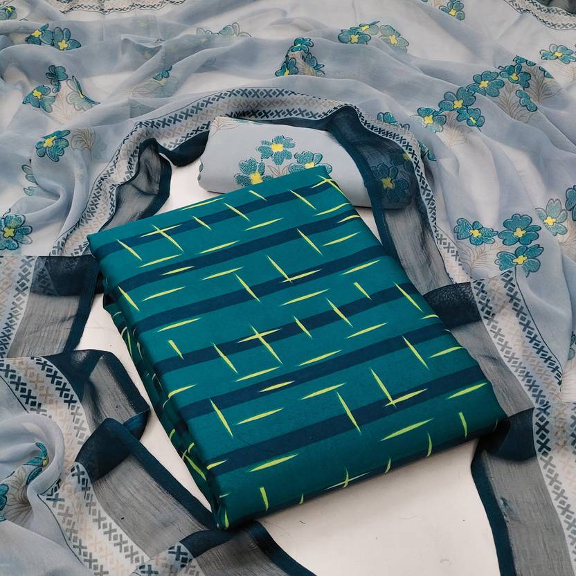 Add style to your Daily Wear Collection with this Printed Dress material. Pack Includes 1 Unstitched Salwar, 1 Unstitched Top, 1 Dupatta. Top & Bottom Fabric : American Crepe, Dupatta Fabric : Martina