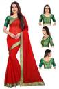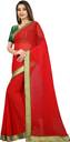 ANAND Embellished, Solid/Plain Bollywood Chiffon Saree (Red)